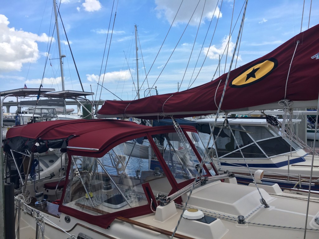 Our IP 35 was built in 1989 and it came with a ton of bells and whistles to help us along in our journey. Our boat only had two owners before us and they were both meticulous about maintenance. The first owners were the ones who sailed around the world. Thanks to them we have an SSB, life raft and EPIRB. The second owners used the boat to cruise the East Coast and the Caribbean. Their big upgrade was a fancy full enclosure for the cockpit. At first, this wasn’t our favorite addition but we are quickly coming to appreciate it.