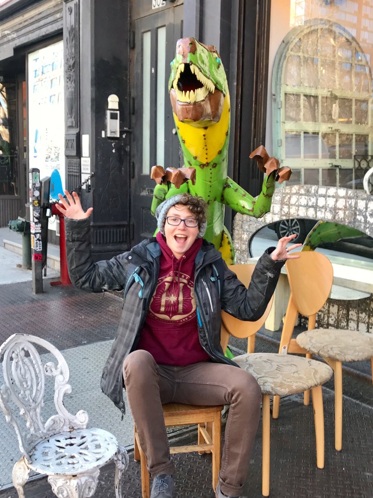 We met at a nerdy bar in Brooklyn, NY, The Way Station, and started dating in 2015. Since then we’ve adopted two cats, gotten married and had many other adventures.